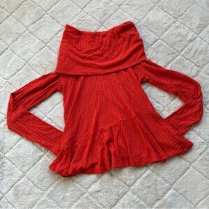 Anthropologie X Maeve | Winterscape Peplum tangerine top | Size Extra Small