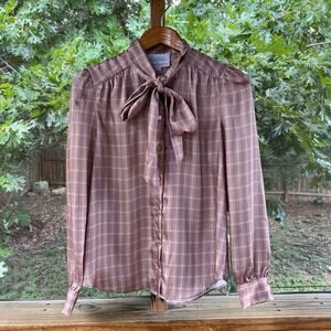 Anthropologie X Mare Mare Tie Neck Long Sleeve Blouse Neutral Size S. NEW