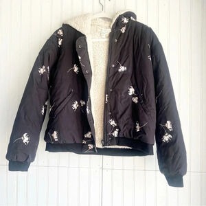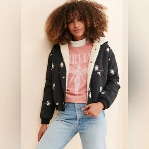 Anthropologie X Saltwater Size M Black Luxe Izzy Floral Puffer Jacket