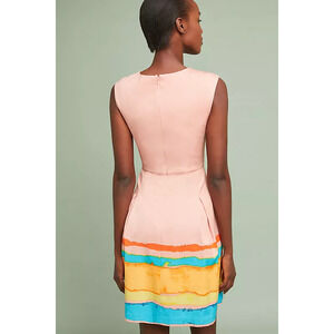 Anthropologie X Tracy Reese Dress Painterly Pleated Mini Fit & Flare Pink Size 2