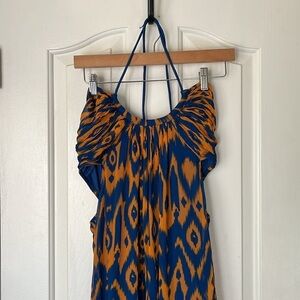 Adjustable halter tie. Cut-out side detail. Side zip. In amazing condition. Size XS. Maxi length--somewhat adjustable length due to the adjustable halter top. Absolutely beautiful dress.