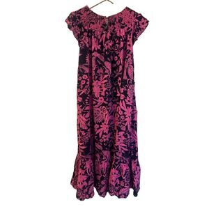 Anthropologie XS Arielle Sleep Maxi Dress Pink Navy Pockets Boho