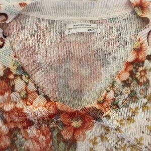 Anthropologie XS Knit Sweater Ivory Floral V-Neck Hi-Low Boho Pullover Top