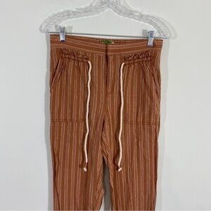 Anthropologie XS Linen Blend Relaxed Fit Pants Orange Striped