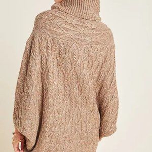 Anthropologie XS NWT Corinne Cable Knit Poncho Sweater Taupe Tan