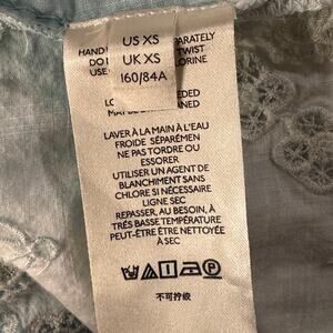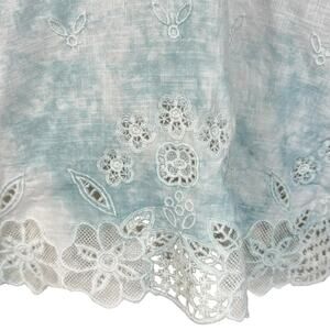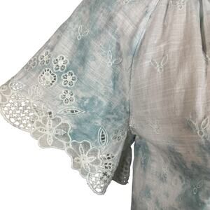 Anthropologie X-Small Top Tie-Dye Floral Embroidered Keyhole V-Neck Eyelet Lace