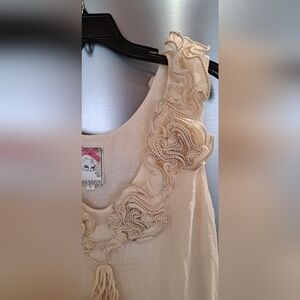 The Anthropologie YOANA BARASCHI Small Blouse Tank is a stylish and versatile piece perfect for any occasions. Made from silk this sleeveless blouse features ruffle accents and tassels for added flair. In great condition.