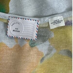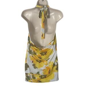 Anthropologie Yellow Floral Halter Tie Top Metallic Shimmer Size M