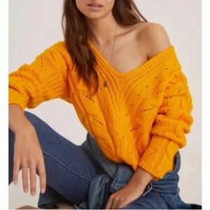 Anthropologie Yellow Gold Ramona V-Neck Cable Knit Sweater