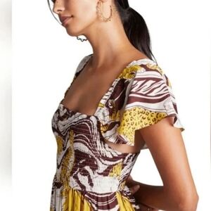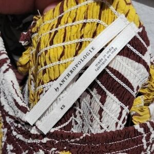Anthropologie Yellow and Brown Patterned Maxi Dress