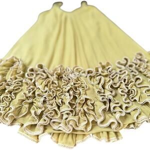 Anthropologie Yoana Baraschi 100% Silk Ruffle Hem Slip Dress Size 8 Yellow Boho