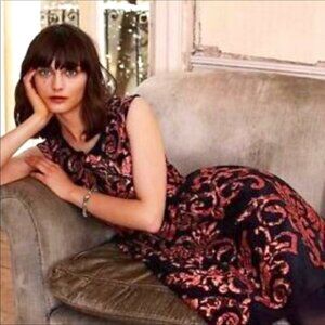 Keywords: Damask Matellaise Tapestry Leaf Leaves Flower Flowers Floral Paisley Velour Velvet Texture Hi Lo Asymmetric Asymmetrcial Asymmetry Dark Feminine Fairy Goth Boho Romantic Baroque Formal Cocktail Party Wedding Guest Reception Party