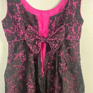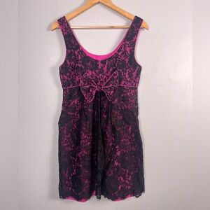 Anthropologie Yoana Baraschi hot pink and black lace mini bow dress size 6