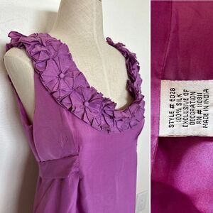 Anthropologie Yoana Baraschi Lilac Origami 100% Silk Dress-3D floral detail- tie back- side zipper