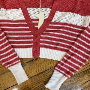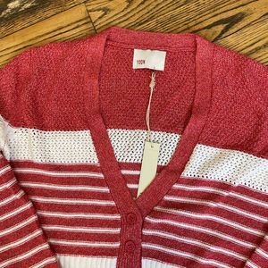 Anthropologie Yoon NWT Cropped Cardigan Lond Sleeve Small Pink & White