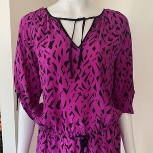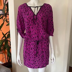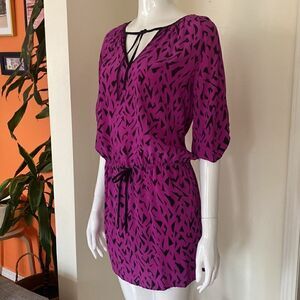 Anthropologie Yumi Kim Magenta Purple 80s Style Printed Mini Dress Sz S