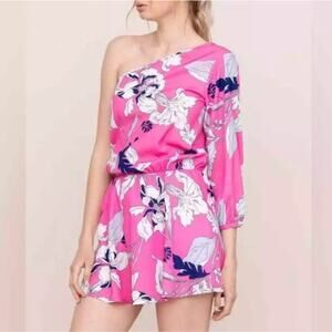 Anthropologie Yumi Kim NEW Pink Eastern Garden Floral One Shoulder Mini Dress L