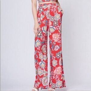 Yumi Kim Red Floral Emma Wide Leg Pants | Size S