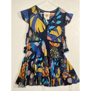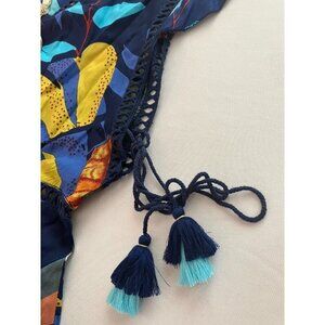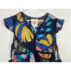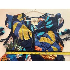 Anthropologie Z&L Tiered Mini Dress Size Blue Lace Floral Beach Cover Up NEW