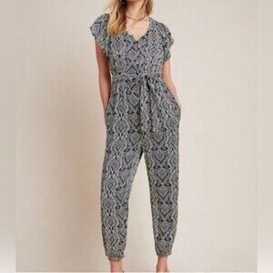 Anthropologie Zadie Boho Paisley Graphic Satin Flutter Sleeve Jumpsuit Petite 4P