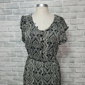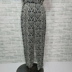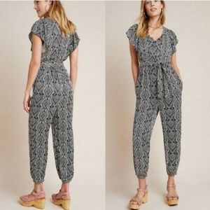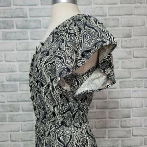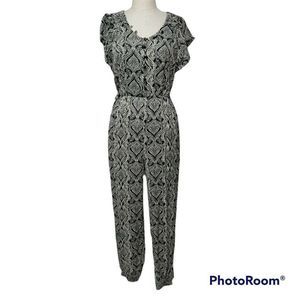 Anthropologie Zadie Size 0 Black & White Filigree Jumpsuit Flutter Sleeves