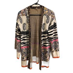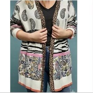 Anthropologie Zebra Cheetah Paisley Cardigan Pullover Sweater