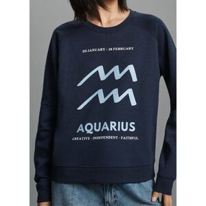 Anthropologie Zodiac Sweatshirt By Catherine O'Sullivan AQUARIUS Small Blue NWT