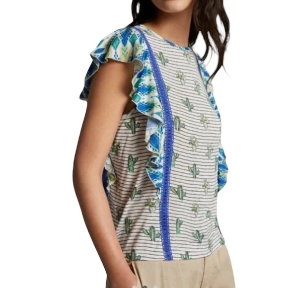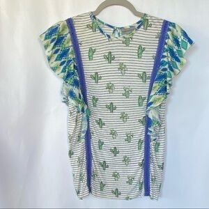 Whether paired with denim cut-offs or wide-leg pants, this sweetly printed top brings a pop of color to everyday ensembles.