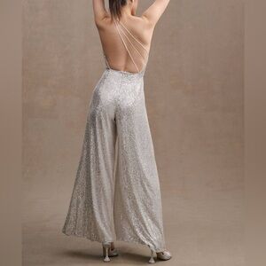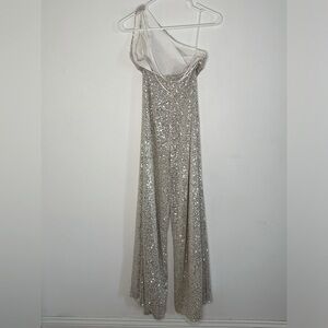 Anthropologie Zunilda Gutierrez Lincoln One-Shoulder Sequin Jumpsuit Silver