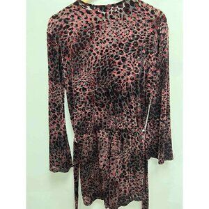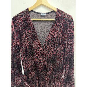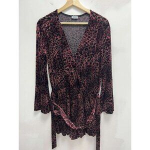 Anthropologie abbeline 3/4 sleeve Velvet leopard print Romper Burgundy Size,S
