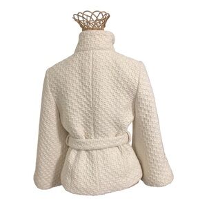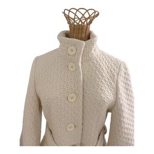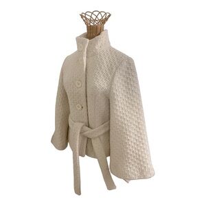 Anthropologie alike Ivory Wool Blend Swing Jacket Textured, Belted, Button Front