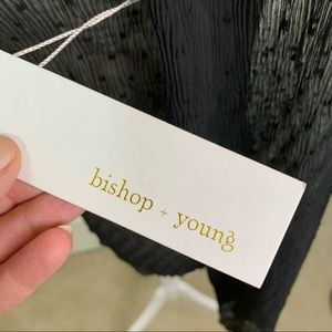 Anthropologie bishop + young Jane Funnel Neck Top in black with Swiss Dots