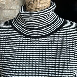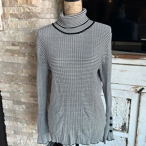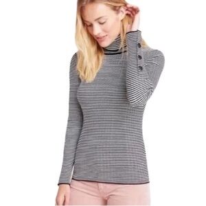 Anthro black and white strip long sleeve turtleneck sweater shirt. Buttons at sleeves. Thicker material.