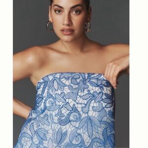 Anthropologie blue white Strapless Embroidered Lace Midi Dress size Small