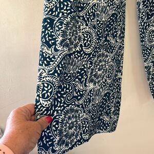 Anthropologie blue white flowy side slit elastic waist pants Size M New
