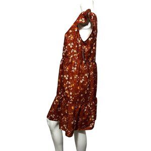 Anthropologie by AGB Floral Copper Babydoll Dress Sz Small Womens Sleeveless Boh