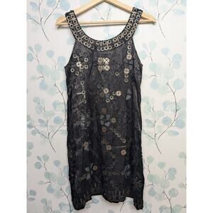 Anthropologie by Conditions Apply Black Dress Metal Beaded Silk Lined Small Flaw
