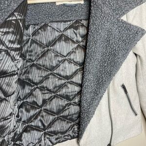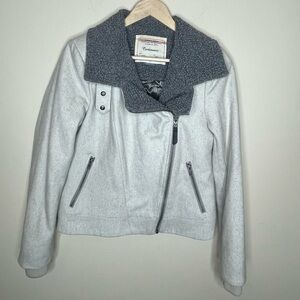 Anthropologie cartonnier wool and sherpa moto style white zip up jacket