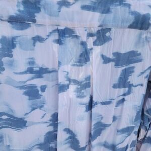 classic button down in an abstract cloud tie dye print blue and white colorway. Preloved condition. All sections of interest as well any known flaws have been documented in the photos and noted as thoroughly as possible. if there are no known flaws, none will be noted. Please feel free to ask any questions before purchase 🙂.