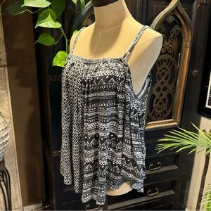 Anthropologie cold shoulder tank top. Tribal and floral patterns.