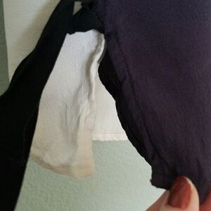 2 tone tank with ribbon ties on the side. A small green spot on the front. Smoke free home. Very lightweight top. Not really any stretch, 100% rayon.