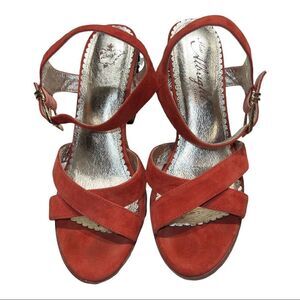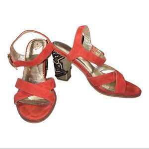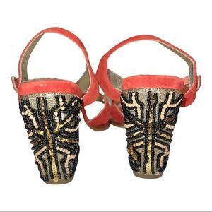 Anthropologie Miss Albright coral suede beaded sequined heeled sandal