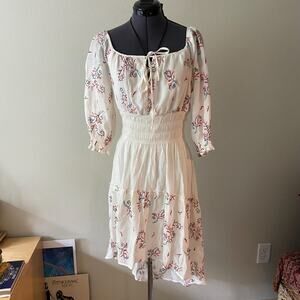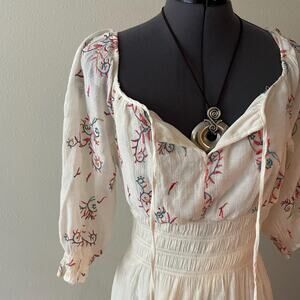Anthropologie cream embroidered boho midi dress hippie fairy cottagecore S