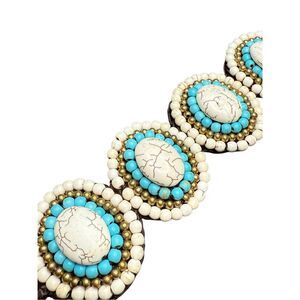 Anthropologie cream, turquoise, and brown beaded wrap bracelet