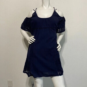 Anthropologie dRA Nancy Navy Eyelet Cotton Dress Size S