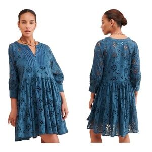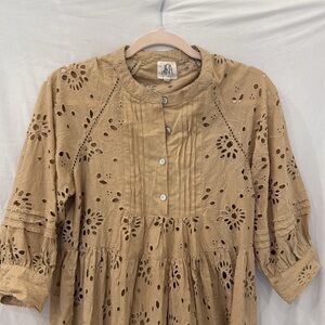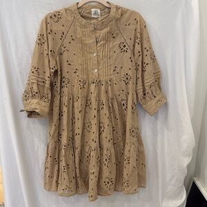 Anthropologie dRA Yara Mini Dress Tan/Cream Eyelet Cotton Size S