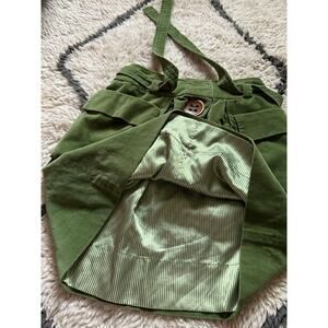 Overall beautiful luxurious green plush velvet with extra large brown buttons matching belt