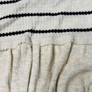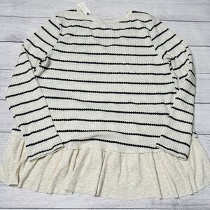 Anthropologie eri + ali Cream Waffle Knit Black Stripe Ruffle Hem Top Large NWT