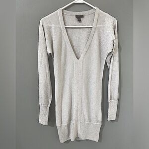Anthropologie eris grey metallic Long sleeve blouse tunic silk blend vneck S