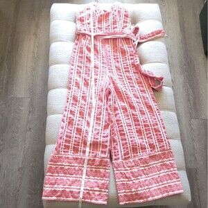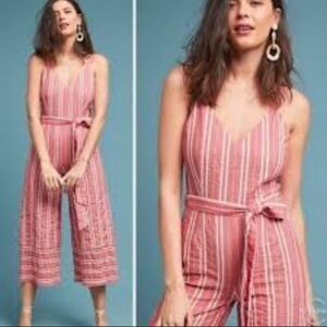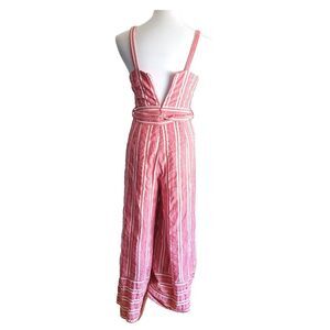 Anthropologie ett:twa Red Stripe Robin Romper Womens Size XSmall Cropped Belt